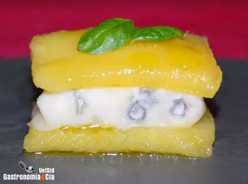 Sobre cómo servir esta receta de Mango y gorgonzola hay muchas opciones, en la foto podéis ver una de ellas, otras veces lo hemos cortado bien fino en lonchas y hemos hecho canelones, también se puede cortar a daditos tanto el mango como el queso gorgonzola y mezclarlo para servirlo en una cucharilla, después con un chorrito de aceite de oliva virgen extra y opcionalmente, una pizca de sal, tienes listo un aperitivo para abrir el apetito de tus comensales.