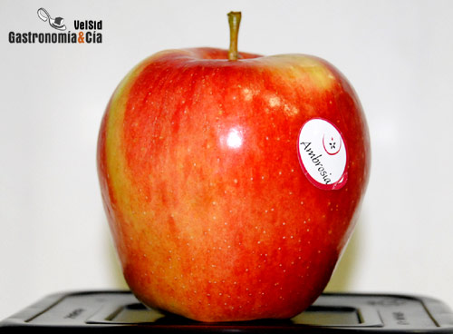 La manzana de los dioses, Ambrosía, es de tamaño medio, tiene la piel bicolor, predomina el rojo sobre el fondo amarillo, su carne es de color crema, jugosa, crujiente, aromática, dulce y con una acidez muy ligera, una buena variedad de manzana que anima a consumir fruta incluso a quienes no les agrada en demasía, lo malo es su precio, pues ronda los tres euros el kilo.