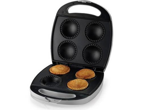 Buscando más información sobre este pequeño electrodoméstico en la web del fabricante (en la de USA) vemos que efectivamente, la máquina de tartas individuales que veis sobre estas líneas (modelo BPI640XL) es una exclusiva para la tienda Williams-Sonoma, al menos de momento. Pero hay otra opción similar que se puede encontrar en tiendas online de Reino Unido y posiblemente también se haya distribuido en nuestro país, es un diseño más antiguo pero también nos sirve para hacer cuatro pequeñas tartas rellenas a la vez y en diez minutos.