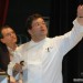 La Fabada de Prendes la elaboran con un sofrito de cebolla y pimentón dulce, aunque primero se ponen a cocer las fabes con la panceta. Antes de añadir el chorizo y la morcilla a la olla, se escaldan en agua hirviendo unos 7 minutos, y durante la cocción se va añadiendo caldo de gallina a demanda. No pudimos fotografiar la fabada que nos presentó Marcos Morán, como podéis ver en la galería de imágenes, pululaba por el escenario una cuchara bien agarrada que no tardó en hacerse con el plato de fabada para confirmarnos la delicadeza y sabrosidad de tan suculento guiso.