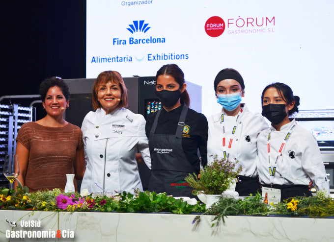 María José San Román subió al escenario del auditorio del Gastronomic Forum Barcelona para hablar de la alta cocina ecológica. Recordemos que el congreso celebrado en el Recinto Montjuïc de Fira Barcelona apostó por la ‘Sostenibilidad’ como tema principal de las ponencias, talleres, debates y demás actividades programadas. Ya habéis visto algunas de las ponencias y talleres a los que nosotros pudimos asistir (ya sabéis que en este tipo de eventos se van desarrollando actividades de forma paralela en distintos escenarios, y el foro de la Ciudad Condal tiene varios), como la ponencia de Ricard Camarena, el taller de Luis Lera…
