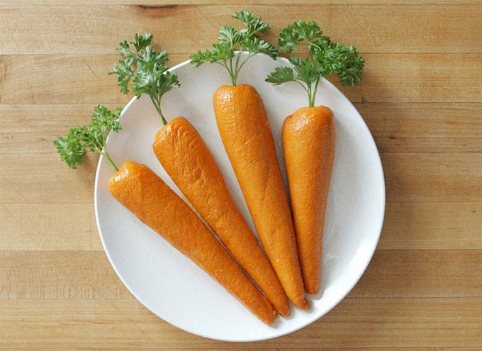 En la foto podéis ver la ‘Marrot’, lo que aparentemente es una zanahoria (carrot en inglés), y parece ser que en cuanto a sabor y textura también es similar, pero en realidad es un alimento rico en proteínas de origen animal. Sus creadores son la cadena de restaurantes de comida rápida Arby’s, una compañía que opera en Estados Unidos y Canadá, popular por su oferta de sándwiches de carne (no hamburguesas), por lo que os contamos esto más que nada como curiosidad, no hay que tomárselo muy en serio.
