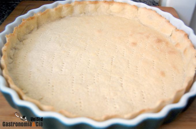 Hornea a 180º C la masa quebrada después de haber recortado los bordes y pinchado la base con un tenedor. Si los ingredientes del relleno son crudos, hornea hasta que esté bien dorada y si el relleno también necesita cocción, recuerda que la masa quebrada deberás retirarla en cuanto tome color y después volver a hornear.