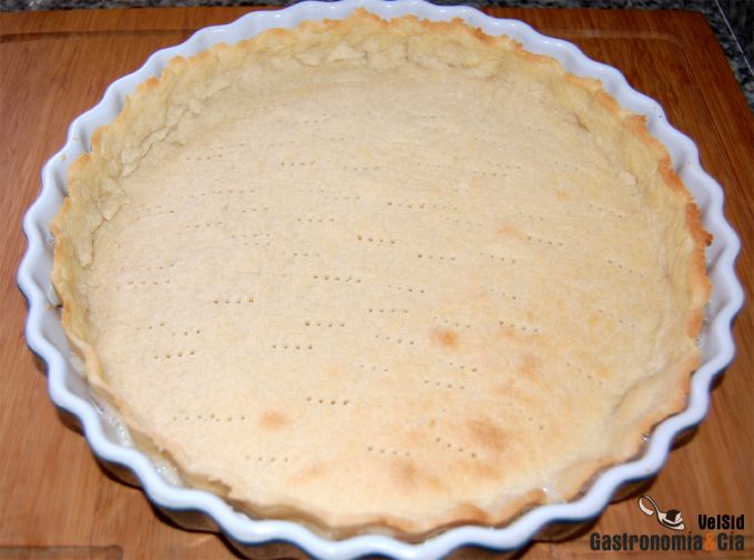 Creo que hay un detalle que te has olvidado que es realmente importante: al cocerla en el horno sin relleno es necesario poner un papel de horno o de aluminio y rellenarlo con judías o cualquier otra legumbre, cruda evidentemente, a los fines de que la masa no suba durante la cocción vacía, ya que se formarían como unas montañitas que después al estar cocida habría que romper y en consecuencia se rompería la masa en su base y no podríamos rellenarla.