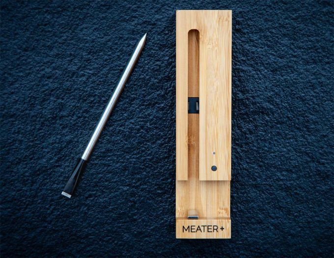 Se trata de un termómetro de cocina inteligente con el que resulta muy fácil y extremadamente cómodo controlar el punto exacto de cocción de los alimentos. Consiste en una sonda de acero inoxidable que cuenta con conectividad inalámbrica de hasta 50 metros, lo que permite estar en otra área de la casa realizando otras labores o descansando plácidamente en el sofá, y controlar lo que se está cocinando a través de la aplicación móvil de Meater Plus (disponible para Android y para iOS).