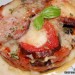Entre capa y capa puedes poner también unas hojas de albahaca, y para culminar el plato termina con las rodajas de berenjena cubiertas de tomate y sobre este un poco de parmesano y mozzarella para gratinar.