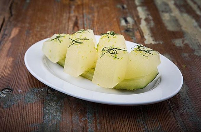 La manzana, la sandía y el melón son las frutas que parece que mejor responden a la impregnación al vacío, una técnica culinaria que se realiza con el objetivo de infundir a un alimento un sabor y/o un color que no tiene por naturaleza. La primera vez que lo probamos fue con el famoso ‘Cóctel sólido de manzana’ de Marcos Morán, también hemos probado la ‘Sandía impregnada en sangría‘ de Albert Adrià, y hoy os traemos otra idea para poner en práctica esta técnica en la sección de ‘Recetas de los Chefs’, se trata del Melón impregnado de fino y hierbabuena de Ángel León.