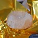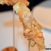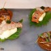 Empieza el verdadero festín de la galera con el Nigiri de mandarina con galeras, cilantro y tapioca, servido sobre una hoja de shiso, dedicado a Alcanar y a su cultivo de cítricos. Lo tomamos de un bocado, por lo que se inundó el paladar de una elegante combinación de galera y mandarina, con un toque de cilantro en gelatina y la textura de las perlas de tapioca.