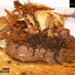 Menos expresivo se hallaba el diamante negro en el Ravioli de pasta philo con trufas y queso de cabra, pero no por ello el bocado era menos exquisito, la crujiente lámina de pasta se funde en el paladar con el untuoso queso de cabra que reinaba con su sabor y que se acompañaba deliciosamente con una emulsión de aceite de oliva y dulce caramelo.