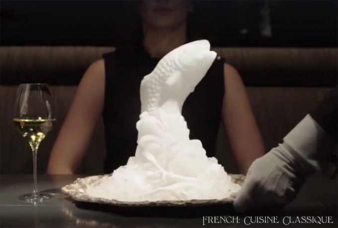 Como suele ser habitual, Grant Achatz presenta el nuevo menú temático con un vídeo cuyas imágenes intentan transmitir el por qué y la temática de los platos, podemos ver que la escena se desarrolla, supuestamente, en un restaurante parisino de hace varias décadas, en un entorno elegante aparece un servicio perfectamente uniformado sirviendo platos con presentaciones pomposas y acordes a la época.