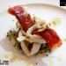 Continuamos unas Habitas salteadas con juliana de sepia y virutas de ibérico, un plato excepcional a pesar de su sencillez. Las habitas tiernísimas, jugosas y muy sabrosas, con el perfecto matrimonio del jamón, ligeramente plancheado y crujiente, y una juliana de sepia muy tierna. También los brotes de cebolla que hacían de cama de las habitas, aportaban su punto de sabor y frescura al plato.