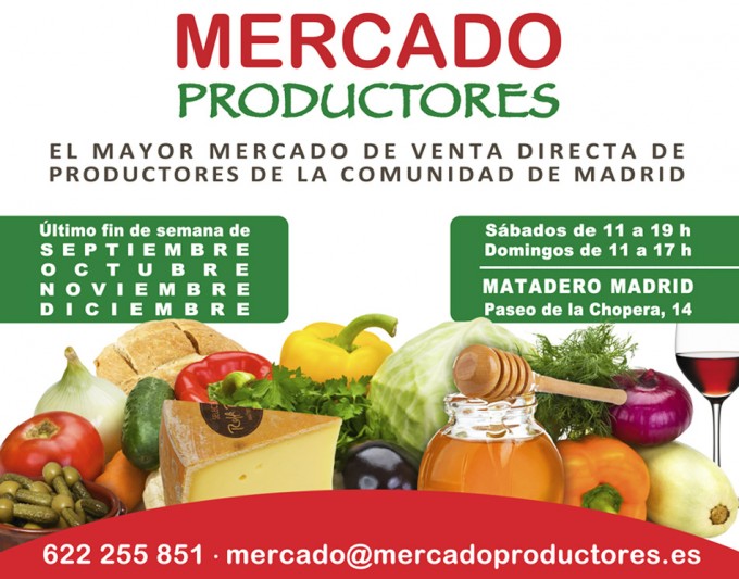 Los próximos días 27 y 28 de septiembre de 2014 se abrirán por primera vez las puertas del Mercado de Productores de Madrid, éste se ubicará en la Plaza Matadero (Paseo de la Chopera, 14), donde se dispondrá de una superficie de 5.000 m2 y tendrá un horario de 11:00 a 19:00 horas el sábado y de 11:00 a 17:00 horas el domingo.
