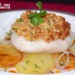 Sirve la Merluza al horno con costra de almendra con la patata como base, espolvorea sobre el plato un poco de perejil picado y riega con unas gotas de ajada. ¡Buen provecho!