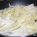 Pela las cebollas y córtalas en pluma fina (corte en juliana), pon el aceite de oliva en un cazo o sartén a fuego lento y pocha las cebollas hasta que estén transparentes y tiernas.