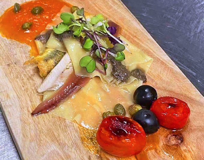 Engraulis encrasicolus es el nombre científico del boquerón, y también de la anchoa y del bocarte, y es que se trata del mismo pez, pero recibe un nombre distinto según el tratamiento que se le proporciona en la cocina, y también según las zonas del país. Es por ello que la chef Pepa Muñoz nos sorprende con un plato con este nombre, Milhojas de anchoa, boquerón y bocarte, con crema de aceitunas y tomate.