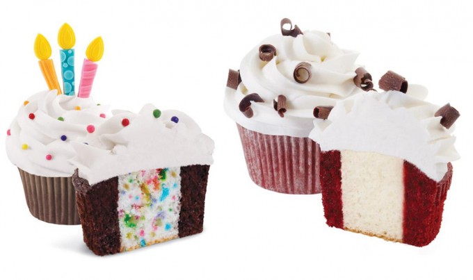 Estos pequeños pastelitos continúan estando de moda, la creatividad está centrada principalmente en la combinación de sabores de la masa y el frosting, en los sprinkles, en la decoración en general… pero ahora también se puede jugar con el factor sorpresa cuando al degustar un cupcake se destapen dos sabores de su masa y sus dos colores.