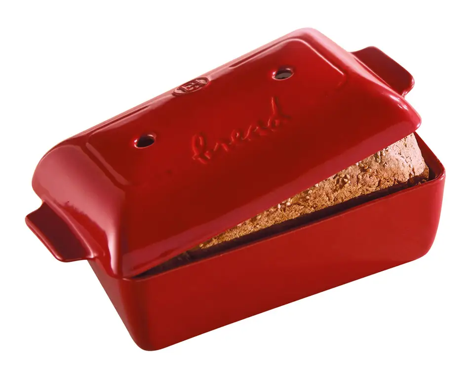 El Bread Loaf Baker de Emile Henry soporta hasta 260º C, está disponible en dos colores, borgoña y carbón (o burgundy y charcoal), tiene unas medidas de 24 x 15 x 12 centímetros, capacidad de 2 litros. Ahora bien, hay que hacer mucho pan para rentabilizarlo, aunque no inmediatamente, pues ya sabéis que este tipo de utensilios duran muchos años, de hecho, la garantía que tiene es de diez años. El precio del molde cerámico para hacer pan de molde es de algo más de 90 euros, podéis conocer más detalles aquí.