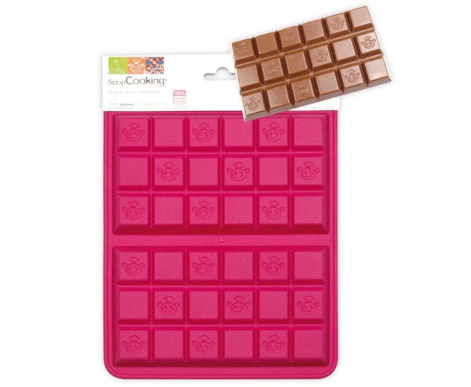 El Molde tableta de chocolate de silicona es de la firma francesa Scrap Cooking, está fabricado en silicona de calidad profesional, silicona Platinum, es antiadherente y soporta temperaturas de -60º C a 230º C, por lo que se le pueden dar muchos más usos que la elaboración de tabletas de chocolate, por ejemplo, bizcochos, gelatinas, etc.