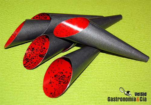 Aunque por el momento no hemos publicado ninguna receta en la que hayamos utilizado el molde cono antiadherente, se ha convertido en uno de los utensilios indispensable cuando hacemos un menú para nuestros amigos o familiares, nos da mucho juego a la hora de hornear una masa en forma de cucurucho, sea para los aperitivos, una guarnición o el postre.