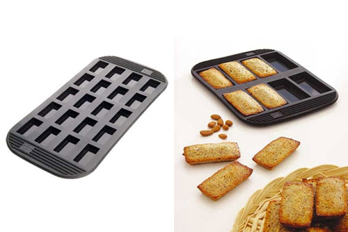 El molde para financiers de Lékué es fácil encontrarlo en varias tiendas online y también en la mayoría los comercios que trabajan con esta firma. Es de silicona, apto para congelar, hornear, refrigerar… tiene 20 cavidades, con medidas de 4’8 cm. de largo, 2’5 cm de ancho y 1’1 cm. de profundidad, el básico tiene un precio de unos 9 euros, pero además tienen el de la línea Gourmet (el inferior) ¿o es el mismo al que han cambiado el color?.