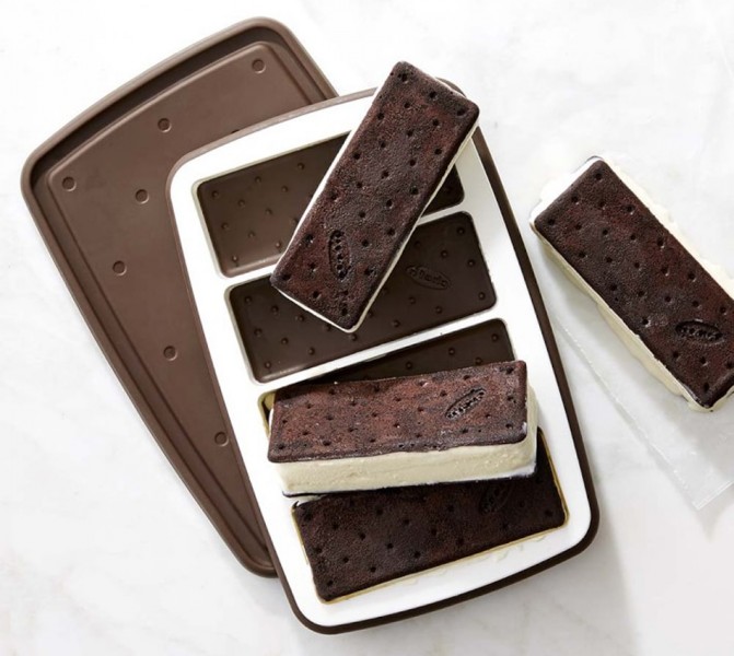 Aunque en realidad se pueden hacer helados sin comprar ningún accesorio extra, siempre hay algunos que ayudan y que gustan tener porque facilitan tener un mejor resultado. Por ejemplo, para hacer unos helados tipo sándwich, una opción es el molde que podéis ver sobre estas líneas y que acaba de lanzar la firma Chef’n, tiene un sistema distinto a este.
