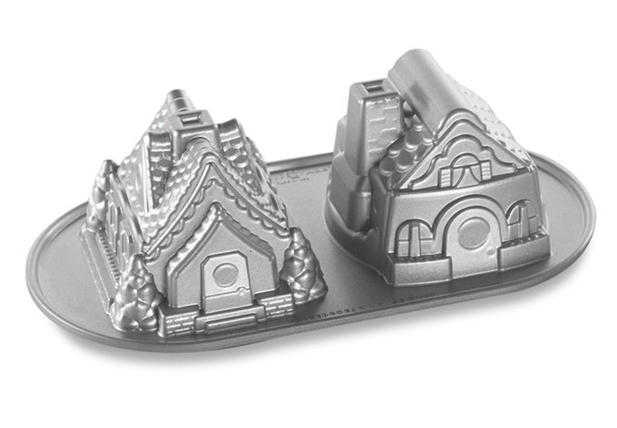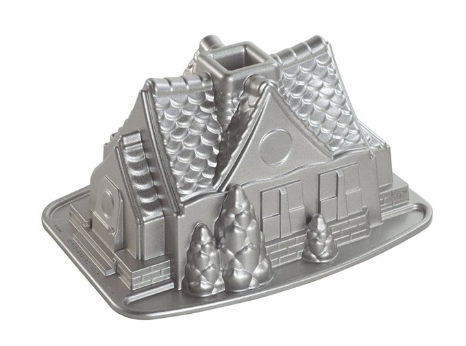 Pero claro, con el paso de los años surgen nuevas formas de hacer dulces de repostería y pastelería, algunos nuevos y otros para proporcionar alternativas a lo tradicional, y un ejemplo lo encontramos con el molde para bundt Casita de jengibre diseñado por la firma Nordic Ware. Como ya os hemos explicado en otras ocasiones, esta empresa familiar estadounidense, fundada en 1946, es la que tiene registrados los moldes Bundt, un tipo de molde caracterizado por tener un orificio en el centro y el contorno acanalado o con distintas formas decorativas.