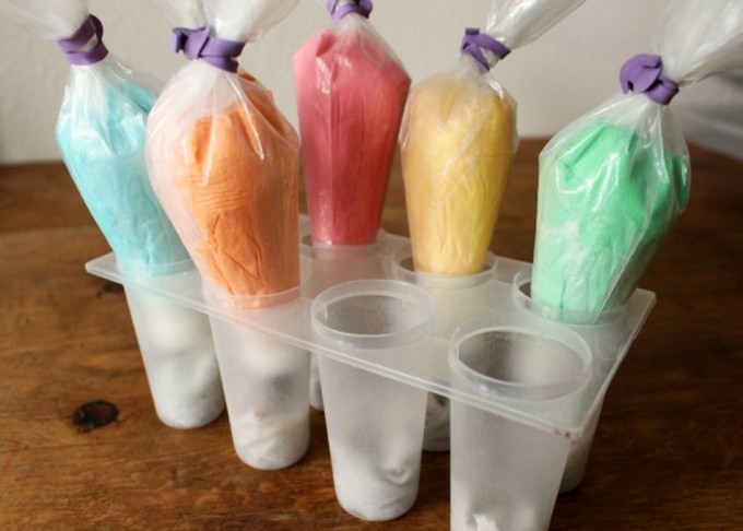 Pero con las actuales tendencias de pastelería y repostería artística, cada vez son más las personas aficionadas que no tienen suficiente con una manga para decorar sus creaciones, pues decoran galletas, pasteles y demás con glaseados de varios colores, por lo que resulta muy útil tener un soporte para todas las mangas que se necesitan. En este aspecto también se puede improvisar, basta con utilizar un molde para helados como soporte de varias mangas pasteleras.
