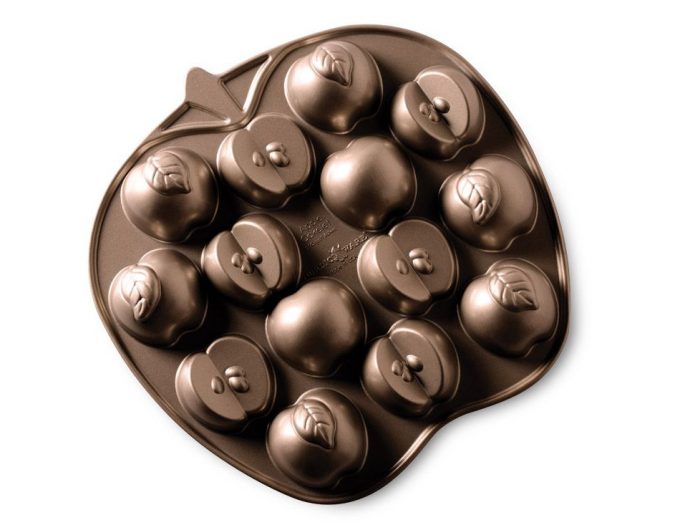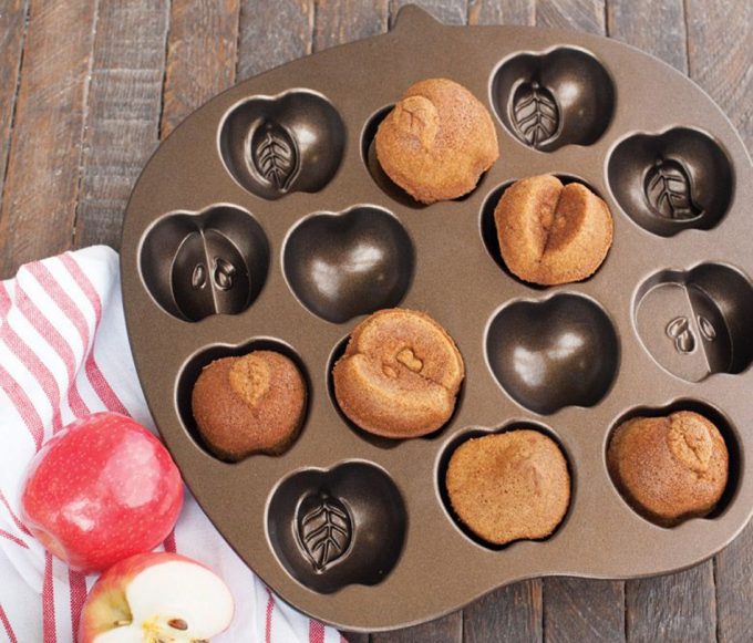 Prácticamente cada otoño descubrimos un nuevo molde de repostería para hacer bizcochos o pasteles con la manzana como protagonista, aunque también se lanzan nuevos productos relacionados con la calabaza, con los cítricos y con lo que tenga que ver con la estación. Pero a nosotros nos llaman más la atención los moldes de manzana, y no hablamos sólo de moldes para hacer bizcochos redondos, rectangulares o cuadrados en los que haya que incluir manzana en la receta, sino de moldes que tienen la forma de la fruta, después ésta se puede incluir en la receta o no, según cada uno.