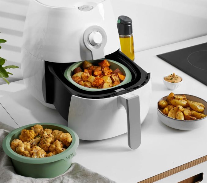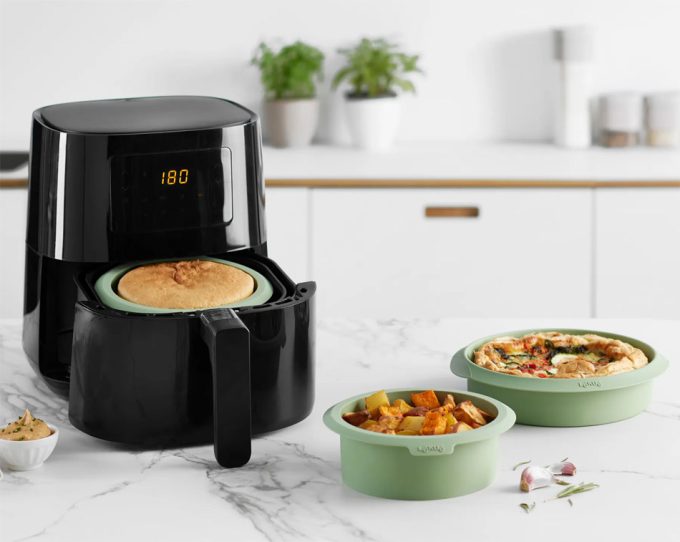Además, los moldes de silicona de Lékué se adaptan a la mayoría de freidoras de aire, pues por sus dimensiones, sirven para aparatos de tamaño pequeño y mediano, y también en los grandes, claro. Y como todos los utensilios de silicona de esta marca, también son aptos para horno, microondas, congelador, lavavajillas, ya sabréis que soportan temperaturas de -60º C a 220º C.
