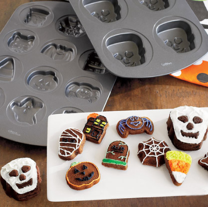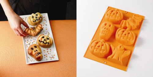 Uno de los más recientes moldes de Halloween que conocemos es el de Lékué que podéis ver en la imagen que encabeza este post, es ideal para hacer bizcochitos, sean dulces o salados, con cuatro formas diferentes, calabaza, calavera, fantasma y murciélago, una vez horneados se pueden pintar con un glaseado, chocolate, caramelo, etc. Su precio es de 14’90 euros.