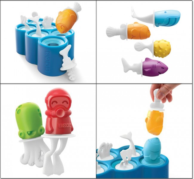 Si este verano queréis sorprender a los pequeños de la casa con nuevas formas para sus helados caseros, Zoku lo vuelve a poner fácil con los denominados Fish Pop Molds. Como podéis contemplar en la imagen, el molde cuenta con seis cavidades y cada una ofrece una forma diferente, un tiburón, un pulpo, una ballena, un pez globo, un pez payaso… también hay un buzo.