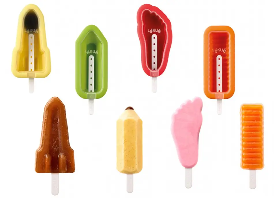 Parece ser que la firma española de utensilios de cocina de silicona Lékué se ha animado a ampliar su catálogo de moldes para hacer helados, y consideramos que va a tener mucho éxito, porque además de una gran variedad de modelos, ha lanzado moldes para helados inspirados en los clásicos Frigopie, Mikolapiz, Twister y Colajet, podéis verlos en la foto sobre estas líneas.