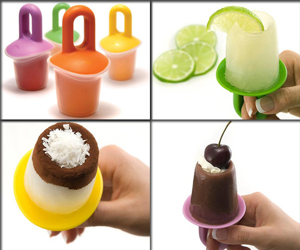 Se compone de cuatro moldes de cuatro colores diferentes, por su diseño son ideales tanto para niños como para adultos, o sea, para toda la familia. Tienen un pequeño tamaño, por lo que además de ocupar poco sitio en el congelador, se controla la ingesta de dulces, aunque quizá para algunos sea un problema el reducido tamaño, un polo de hielo hecho con ingredientes naturales puede ser una excelente forma de hidratarse y refrescarse en verano.