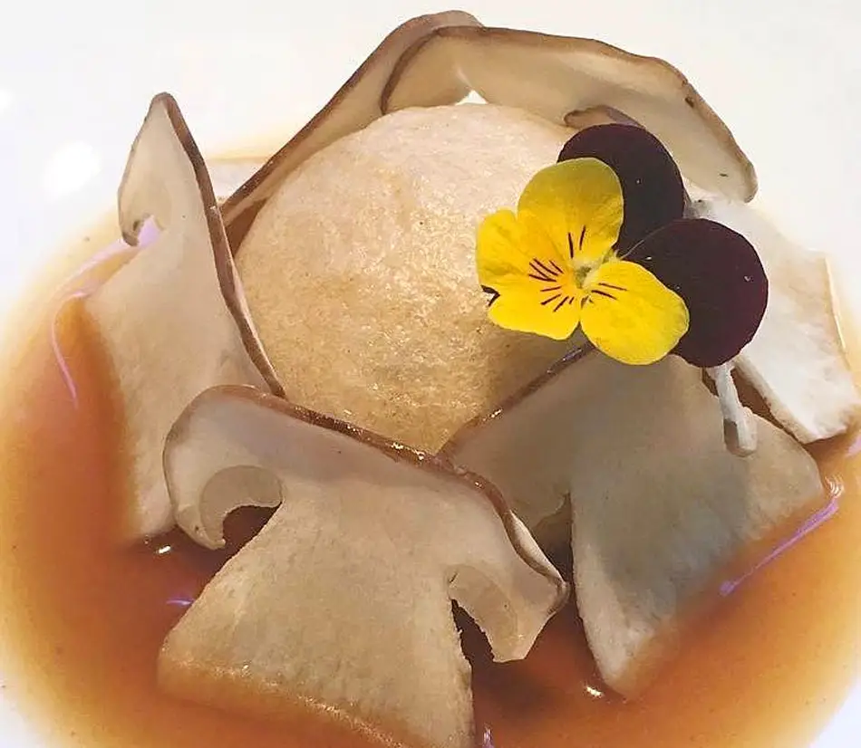 Sobre estas líneas podéis ver el Mollete al vapor con rustido de payés, inyección de nata agria, consomé y carpaccio de setas de Jordi Esteve, chef del Restaurante Nectari de Barcelona, reconocido con una estrella Michelin desde el año 2012. Este es un plato de su actual menú de otoño, en el que priman los productos frescos de temporada y de proximidad, así que es fácil que podáis disfrutar de él si os sentáis en una de las mesas del restaurante en estos días, y también de otros platos en los que se deja ver la creatividad y el dominio las técnicas culinarias tradicionales y de vanguardia que tiene el chef.