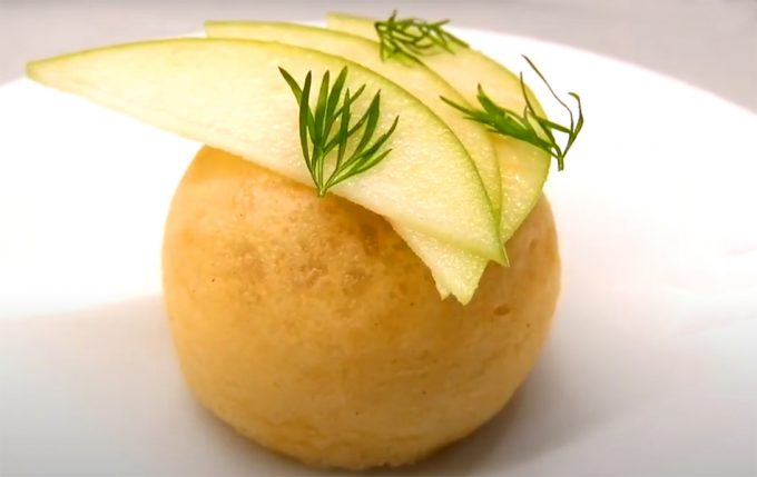 El cocinero del restaurante LÚ Cocina y Alma de Jerez de La Frontera, Juanlu Fernández, creó un recetario para las pasadas fiestas con productos ibéricos de Montesano, y entre las propuestas culinarias realizadas encontramos el Mollete al vapor de sobrasada ibérica y manzana verde que podéis ver ilustrando estas líneas. Se trata de un aperitivo que se sirve templado o caliente, puesto que el mollete o panecillo, cuya receta también tenéis a continuación, recibe un golpe de calor al vapor antes de servirse. Esta temperatura contrastará con la ensalada de la que se acompaña este bocado, que consiste en unas láminas de manzana aderezadas con aceite de oliva virgen extra, vinagre de manzana y tahini o pasta de sésamo.