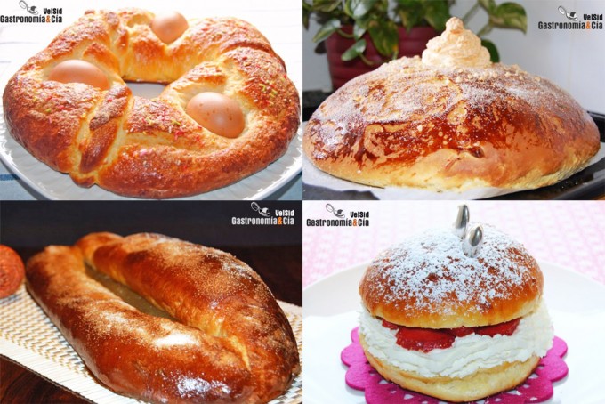 A continuación podéis acceder a las recetas de Mona de Pascua, además de conocer el origen y la tradición, pulsando sobre su nombre, bajo a la foto correspondiente, tenéis la Mona de Pascua tradicional, el Panquemao, la Farinosa y una Mona de Pascua rellena que nos permitimos recomendaros, es para ofrecer a vuestros invitados una Mona sólo para ellos.