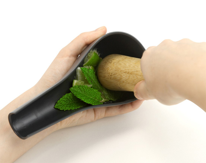 Este utensilio de cocina está fabricado en polipropileno y bambú, es muy ligero, por lo que está pensado para machacar ingredientes suaves y pequeñas cantidades. Su diseño está pensado para poder verter lo que se ha picado fácilmente a través de su ‘pico’ o asa, ideal si se tiene que introducir en un recipiente de boca pequeña. El asa permite sujetar el recipiente con una mano para mantenerlo estable mientras se pica con la otra.