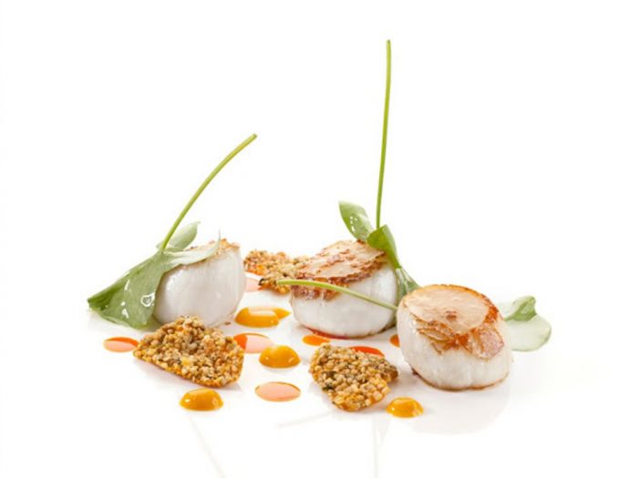 En la laboratorio Arzak estudian los platos hasta alcanzar lo que consideran sublime para ofrecer a sus clientes una experiencia gastronómica extraordinaria. Así que es de agradecer que todo el trabajo realizado lo pongan al servicio de todos los aficionados y profesionales de los fogones, afortunadamente, hoy en día los grandes chefs comparten sus conocimientos y sus recetas, lo que sirve para seguir evolucionando a mayor velocidad. Hoy volvemos a contar con una nueva receta en la sección ‘Recetas de los Chefs’ con la que entramos en la cocina del restaurante vasco reconocido con tres estrellas Michelin, en la foto podéis ver el plato ‘Mostaza de cáñamo y vieiras de Juan Mari y Elena Arzak‘.