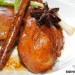 Pon en la cazuela, conservando el aceite en el que se ha dorado el pollo (que no debe ser mucho, sólo que cubra la base) y dejando primero que se temple, la salsa de soja, el vino, el jengibre pelado y cortado en rodajas, el anís estrellado, la canela, los clavos de olor, la pimienta, las cebollas cortadas en gajos, el zumo de naranja y su piel y el azúcar.