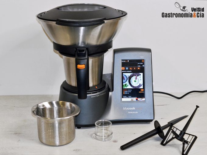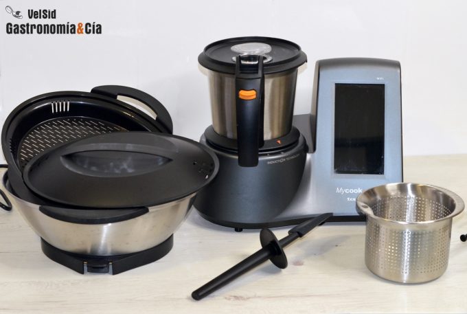 También dispone de balanza incorporada con precisión de 5 gramos y con función de tara, con lo que se pueden ir añadiendo los ingredientes a la jarra a medida que se va elaborando la receta, sea siguiendo las indicaciones de una receta guiada o sea cocinando de forma manual. Gracias al diseño y a los accesorios de Mycook Touch, es posible realizar cocciones a tres niveles, en la jarra, en el cestillo y en la vaporera que, como hemos comentado, es de acero inoxidable y tiene una capacidad de 4’5 litros.