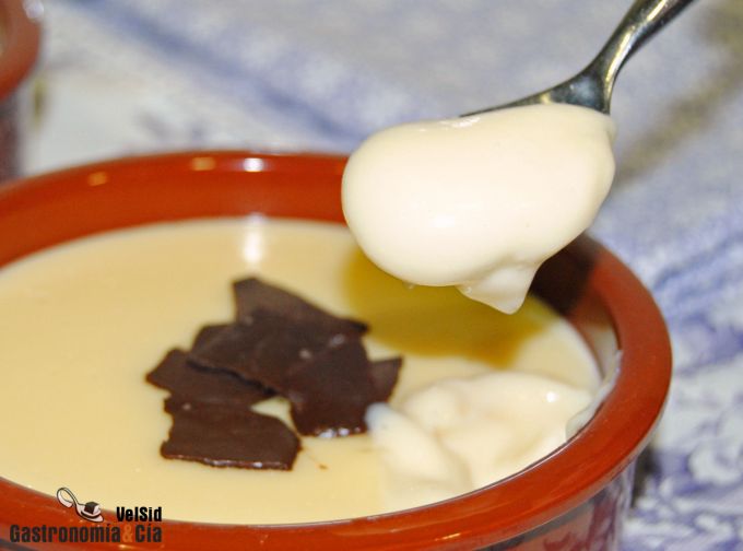 Es muy habitual combinar los dulces de chocolate blanco con frutos rojos por la acidez que aportan, pero nosotros en este caso optamos por tomar las natillas solas, con unas virutas crujientes de chocolate negro o con unas galletas crujientes, pueden ser unas tejas, unas galletas de chocolate, galletas de almendra y amaretto… ¡Buen provecho!