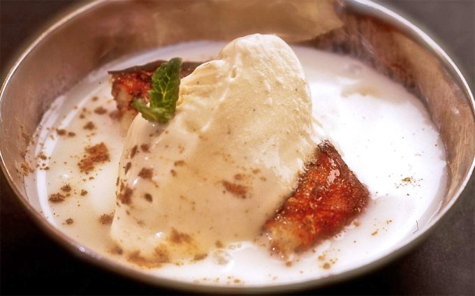 Podemos hacer torrijas con el pan que consumimos en el día a día si se nos queda duro, con pan de torrijas, pan de brioche, pan candeal… pero, además, con estas torrijas podemos hacer un postre para comer con cuchara como el que tenemos hoy en la sección ‘Recetas de los Chefs‘, ilustrando estas líneas podéis ver el plato de Natilla, torrija y chantilly de piña de Andrés Madrigal, el chef madrileño que después de pasar unos años encendiendo los fogones en las Américas, ha regresado a la capital española, ahora se puede disfrutar de su cocina en el restaurante La única.