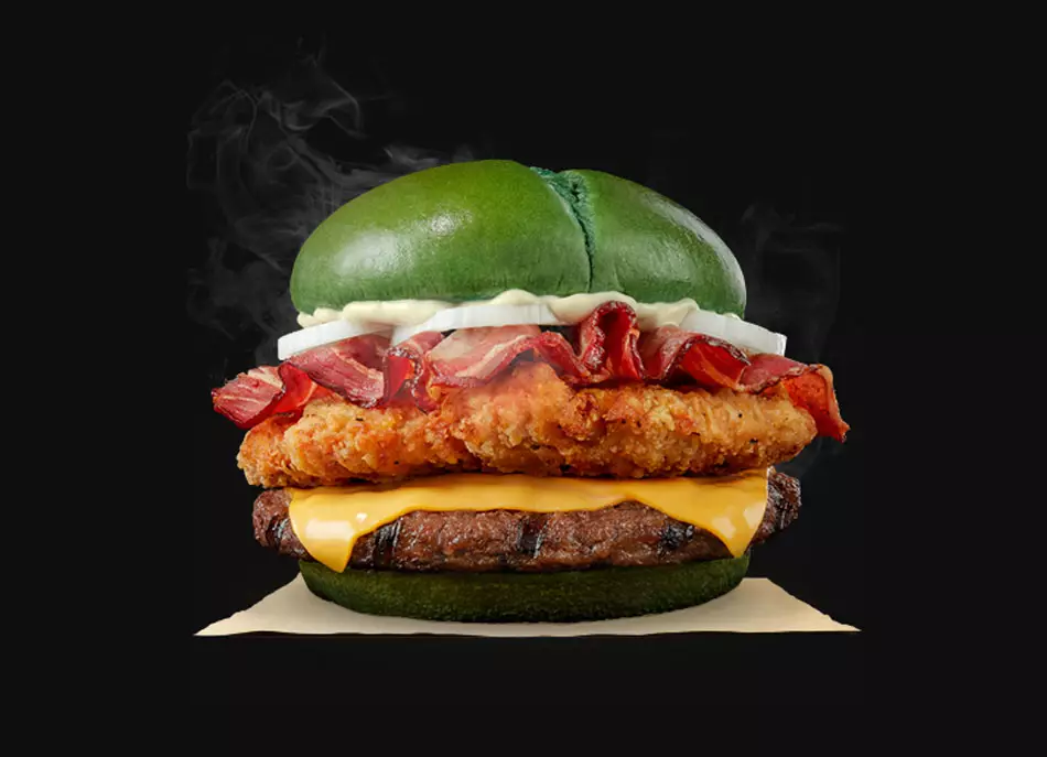 Lo de teñir el pan ya es algo habitual de esta cadena de fast food, recordemos que el año pasado presentó la hamburguesa Halloween Whopper en España con motivo de la celebración de la Noche de Brujas, y destacaba por el pan de color negro. Esta hamburguesa anteriormente se había lanzado en Japón, aunque en ese caso fue con el propósito de innovar y captar la atención de los clientes. La hamburguesa Nightmare King se presenta como una “criatura de otro mundo” por el color del pan, por lo demás, los ingredientes son habituales, está elaborada con carne, queso, pollo, bacon, cebolla y mahonesa.