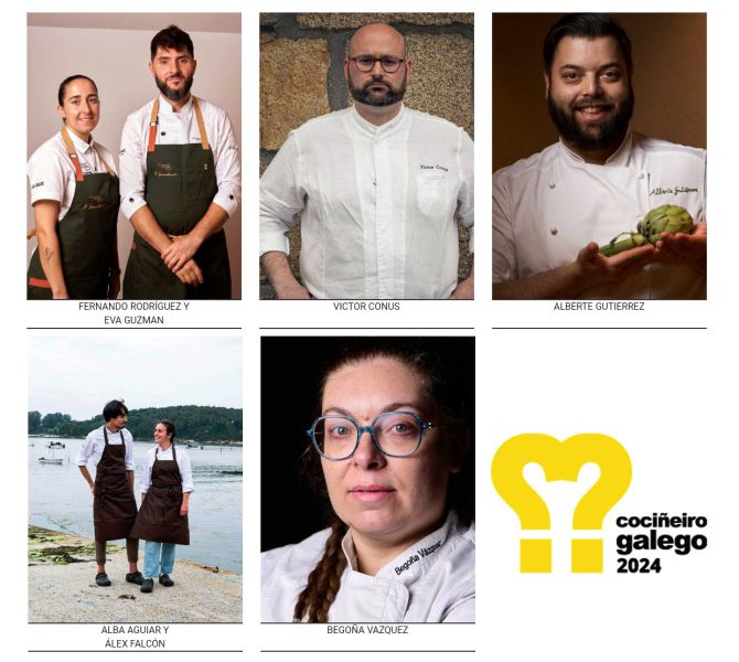 El ganador del Premio Cociñeiro Gallego 2024 se sumará a la lista de premiados que os recordamos que son: Diego López (La Molinera, Lalín) en 2014; Gorka Rodríguez (A Pulpeira de Melide, A Coruña) en 2015; Jorge Gago (A Maceta, Santiago) en 2017; Alén Tarrío (Pampín, Santiago) en 2019 y Moncho Méndez (Millo, A Coruña) en 2022.