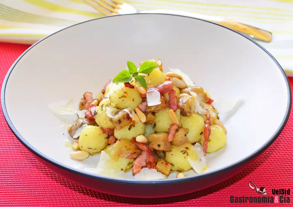Aquí tenéis una nueva receta para disfrutar de unos simples ñoquis, basta con saltear un poco de berenjena con bacon y piñones para disfrutar de un plato que ayudará a recuperar energía, además de hacer disfrutar al paladar.
