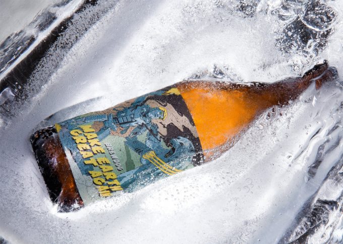 La cerveza Make Earth Great Again (Haz que la Tierra sea grandiosa nuevamente) encarna la protesta de la retirada de Estados Unidos del acuerdo de París sobre el cambio climático, la bebida se ha elaborado con ingredientes procedentes de las zonas más afectadas por el cambio climático, como el agua del hielo derretido del casquete polar ártico (capa de hielo que cubre el Ártico) y unas bayas de Ártico.