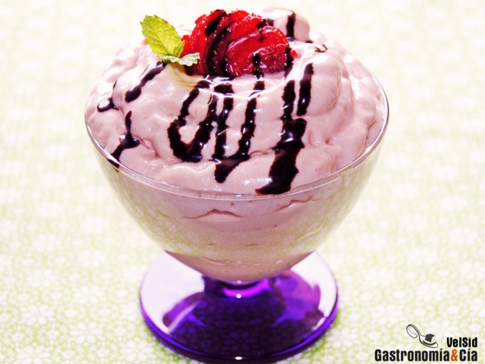 Gelatina de queso cottage con caramelo de chocolate y Calvados