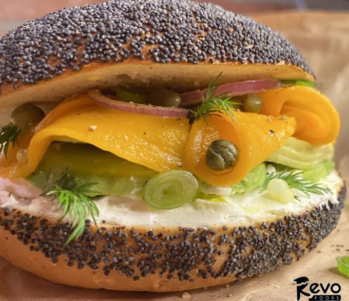 El nuevo “salmón” ahumado vegano impreso en 3D que ha sido creado por la empresa Revo Foods, se presentará en Austria en un evento denominado “Salmón con actitud”, tendrá lugar en el restaurante Budapest Bagels de Viena (Austria) el próximo día 6 de marzo y se ofrecerá una degustación. Se trata de un producto que afirman que imita todas las características del salmón ahumado, pero se ha elaborado con productos vegetales como proteína de guisantes, extractos de algas, fibras dietéticas… en total se han utilizado 11 ingredientes.