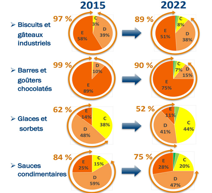 La organización de consumidores explica que en otras cuatro categorías de productos que se han analizado, el etiquetado NutriScore tiene una presencia limitada, un 17% en galletas y pasteles, un 17% en barritas y snacks de chocolate, un 10% en salsas y menos del 1% en helados y sorbetes. A esto hay que sumar que las categorías mencionadas no han experimentado apenas mejoras nutricionales desde que se puso en marcha el etiquetado en el país galo.