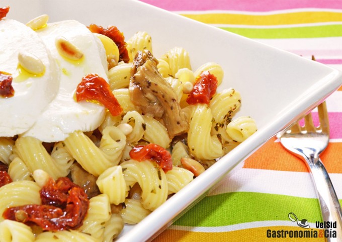 Ensalada de pasta con tomates, feta y vinagreta de balsámico